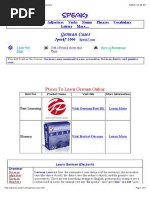 German Cases Nominative Accusative Dative Genitive Pdf Grammatical Gender German Language