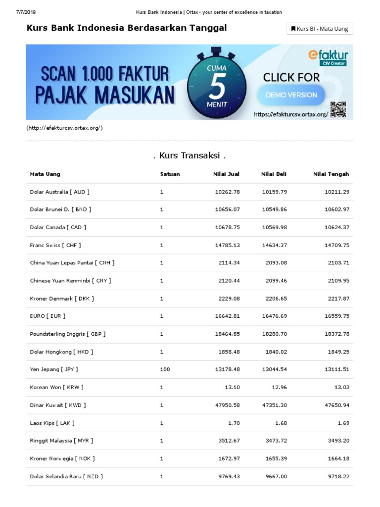 Kurs Bank Indonesia Ortax Your Center Of Excellence In Taxation
