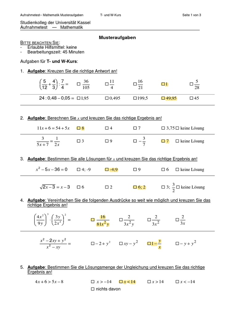 30 min Ma- Testpdf 2844 KB vom 12042017. Sehr hilfreiche Sammlung von Aufnahmetest-Beispiele und Musterprüfungen zu allen Studienkollegs in Deutschland und allen Kursen.
